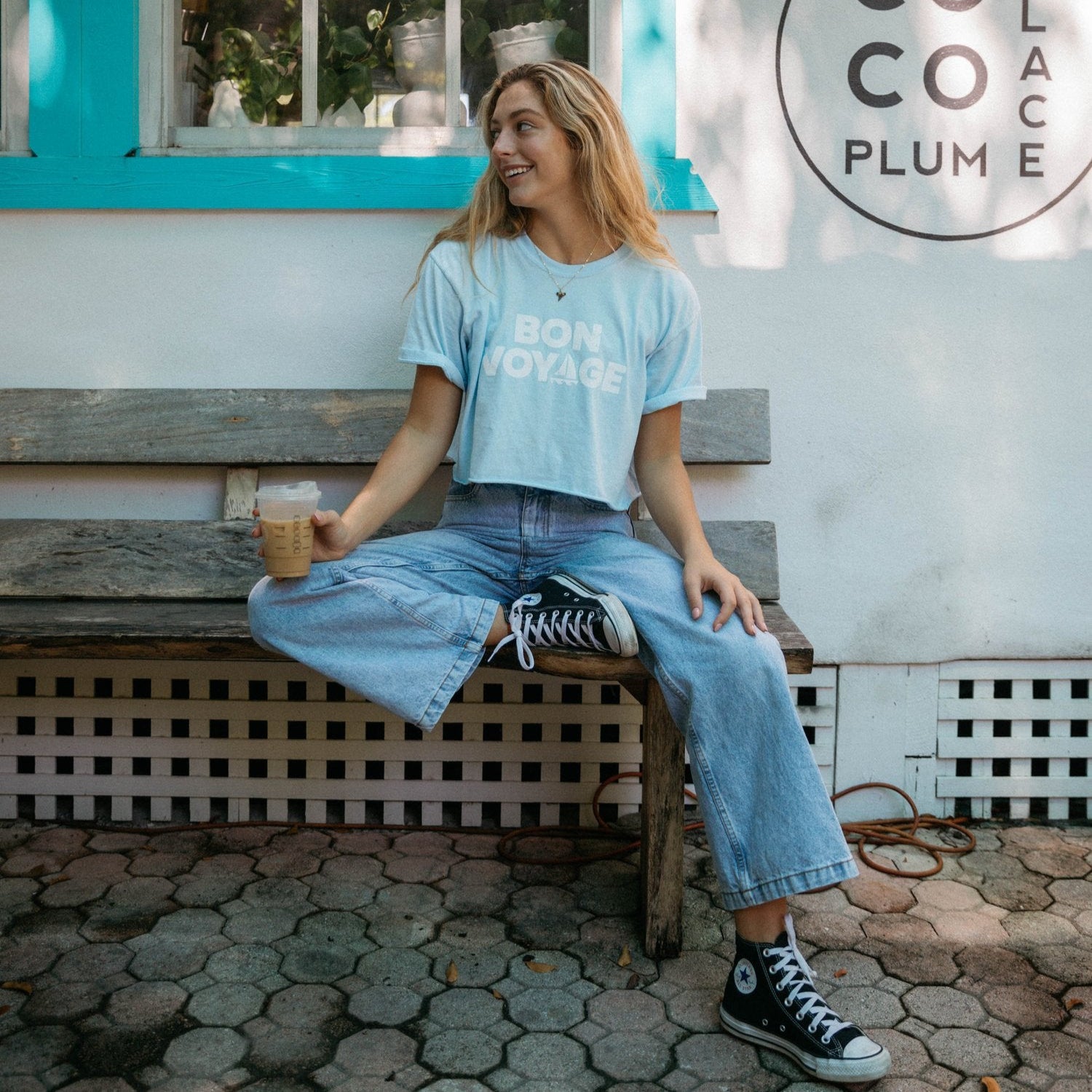Cropped Bon Voyage Tee designed by Antonia Digiacomo! This screen printed Comfort Colors tee is super soft, light weight, and can be worn any which way! Washer and dryer safe.