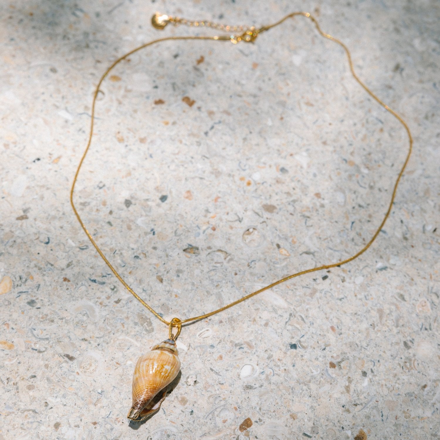 The Golden Shores Necklace is a timeless beachy look. The 24k gold dipped seashells on a 24k gold plated necklace is perfect for swimming in the ocean sunrise to sunset! 18-20”