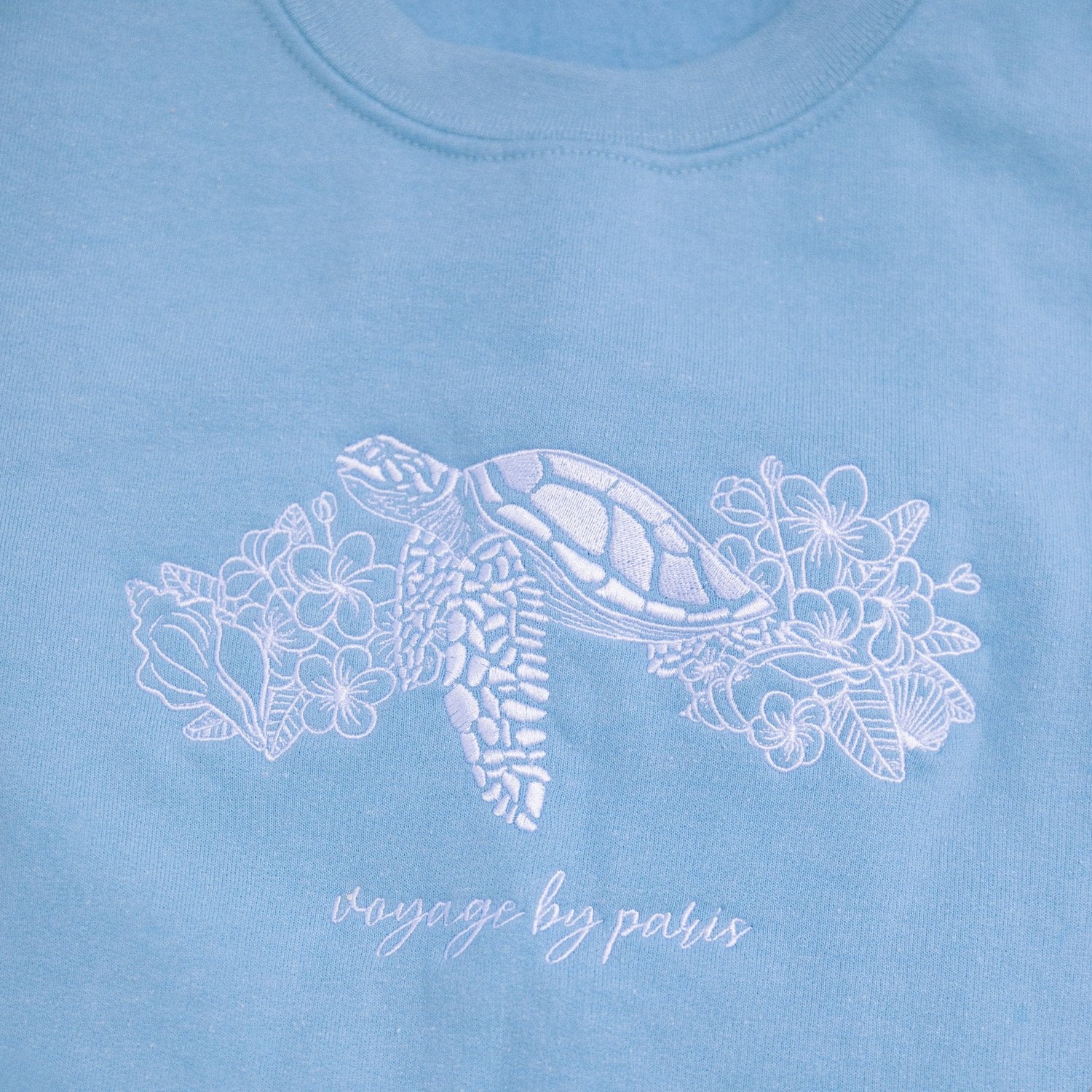 This embroidered, lightweight crewneck is inspired by my trip to Green Turtle Cay, Abacos, Bahamas! I really wanted to capture the true essence of this magical island. The beautiful sea life, plumerias hanging off every branch, and conch shells galore are just a few of the stunning elements of this island♡