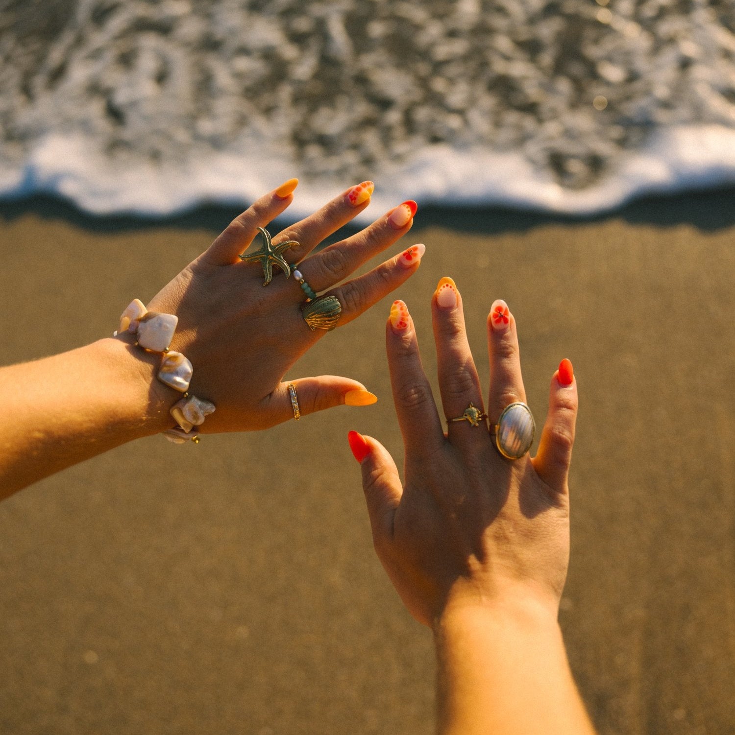 The Honu Ring is a dainty gold ring featuring a charming sea turtle, perfect for beach-loving girls who carry the ocean with them. In Polynesian culture, the honu (sea turtle) symbolizes wisdom, protection, and long life, making this ring more than just jewelry—it’s a reminder of strength and connection to the sea. Wear it solo or stack it for the ultimate island-girl look!