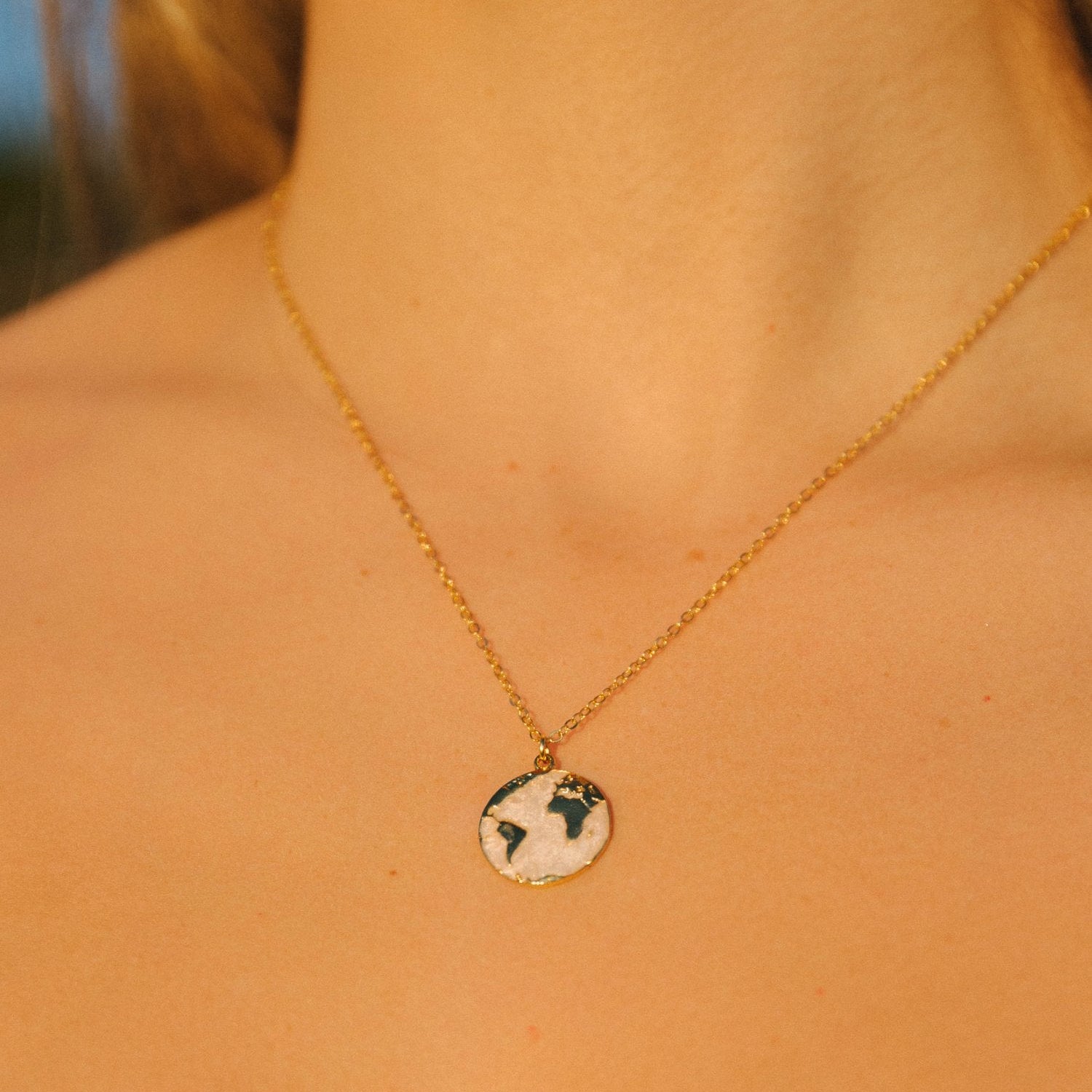 The iridescent globe necklace is a piece inspired by my travels to Costa Rica. Life is short and the world is wide. I wear my iridescent globe necklace as a reminder of my goal to see as much of this beautiful planet as possible♡