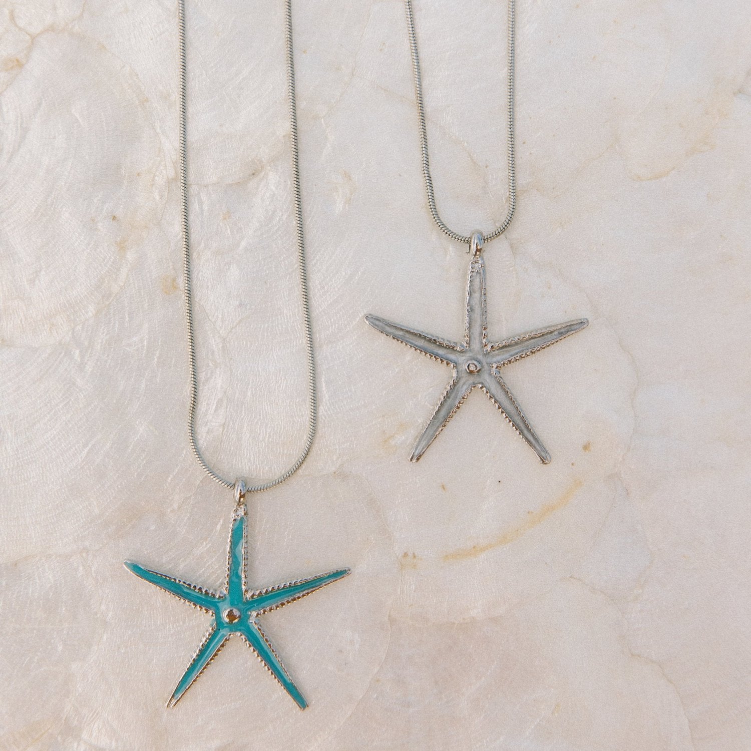 The Iridescent Starfish Necklace is one of my favorite necklaces of the collection! This 24k gold plated / sterling silver necklace is perfect for swimming in the ocean sunrise to sunset! The pendant is 1.5x1.5” and is truly the most beautiful statement piece. 16-18”