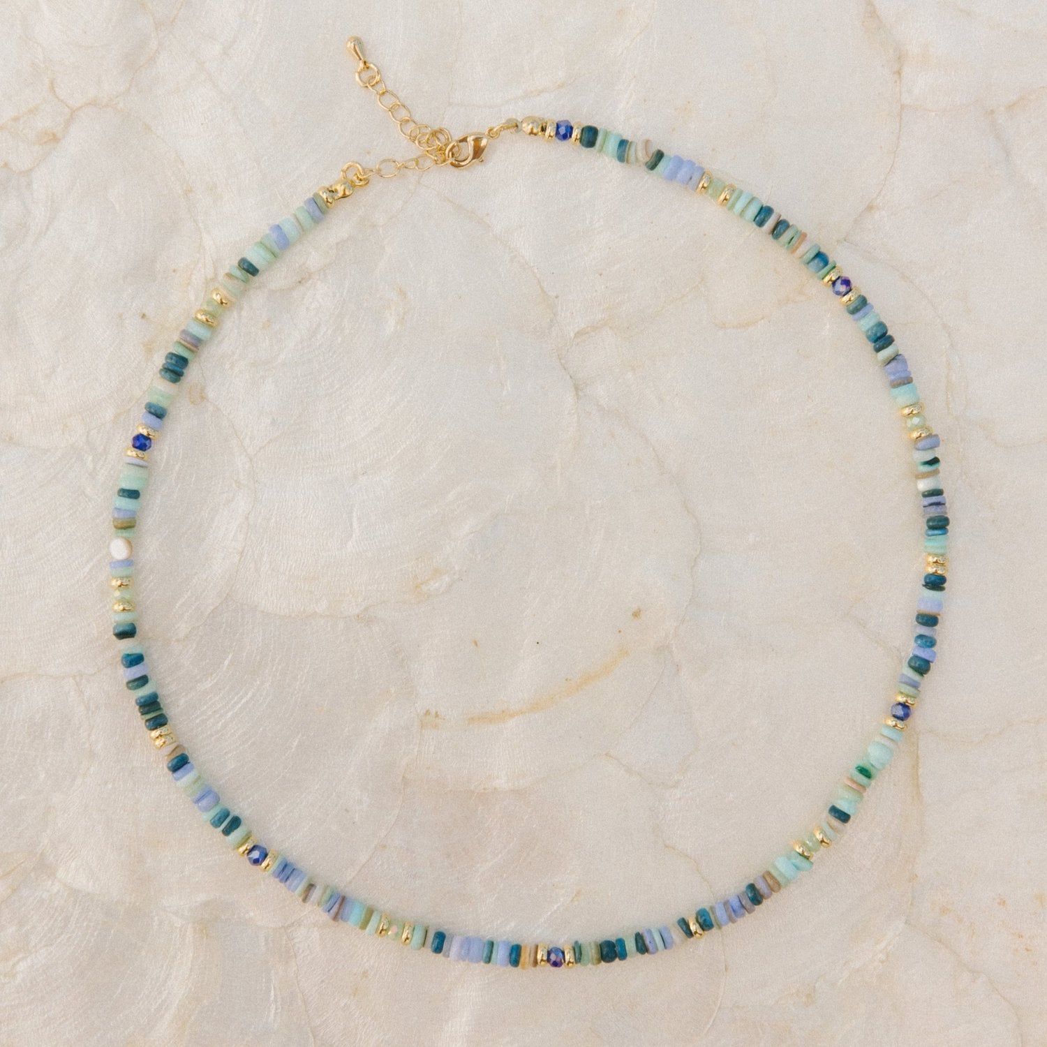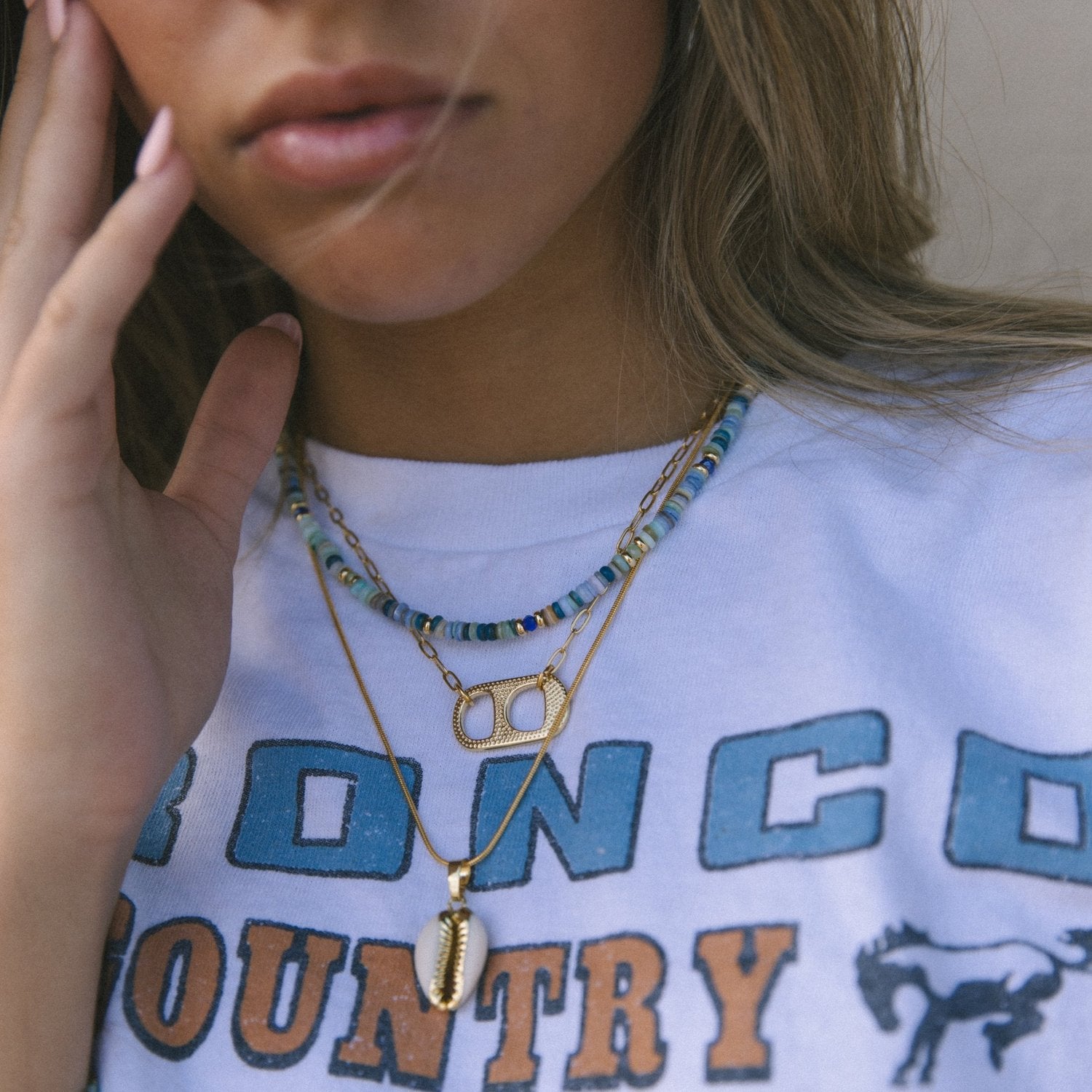 The Mystic Necklace is a 24k gold plated, tarnish free, multi cool colored beaded necklace that is sure to elevate any look! 16"-18"