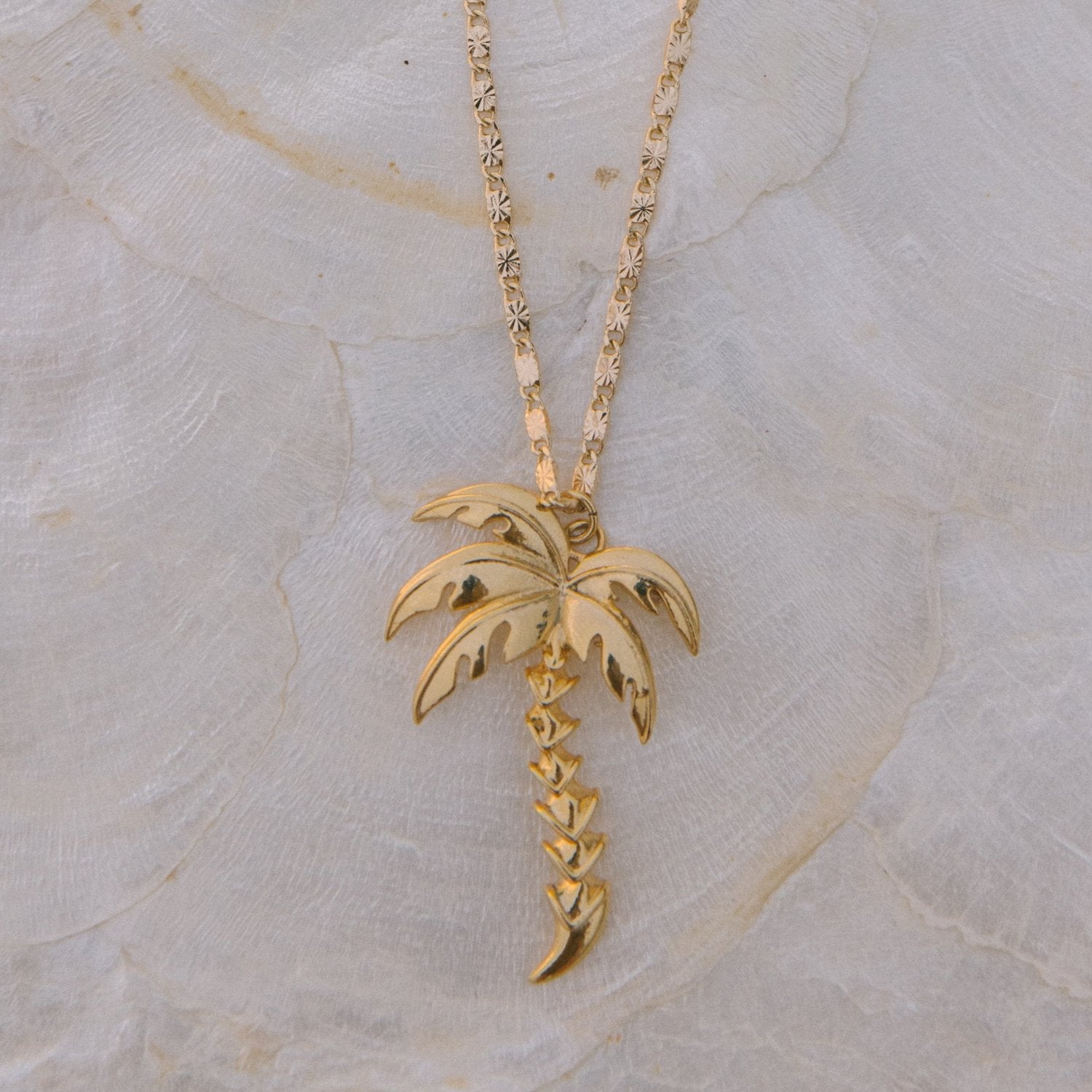 Classy, yet bold, the Royal Palm Necklace is a staple year round! This stylish, dainty chain paired with the shiny pop of the palm is the perfect pair. This 24k gold plated necklace is perfect for swimming in the ocean sunrise to sunset! 18-20in