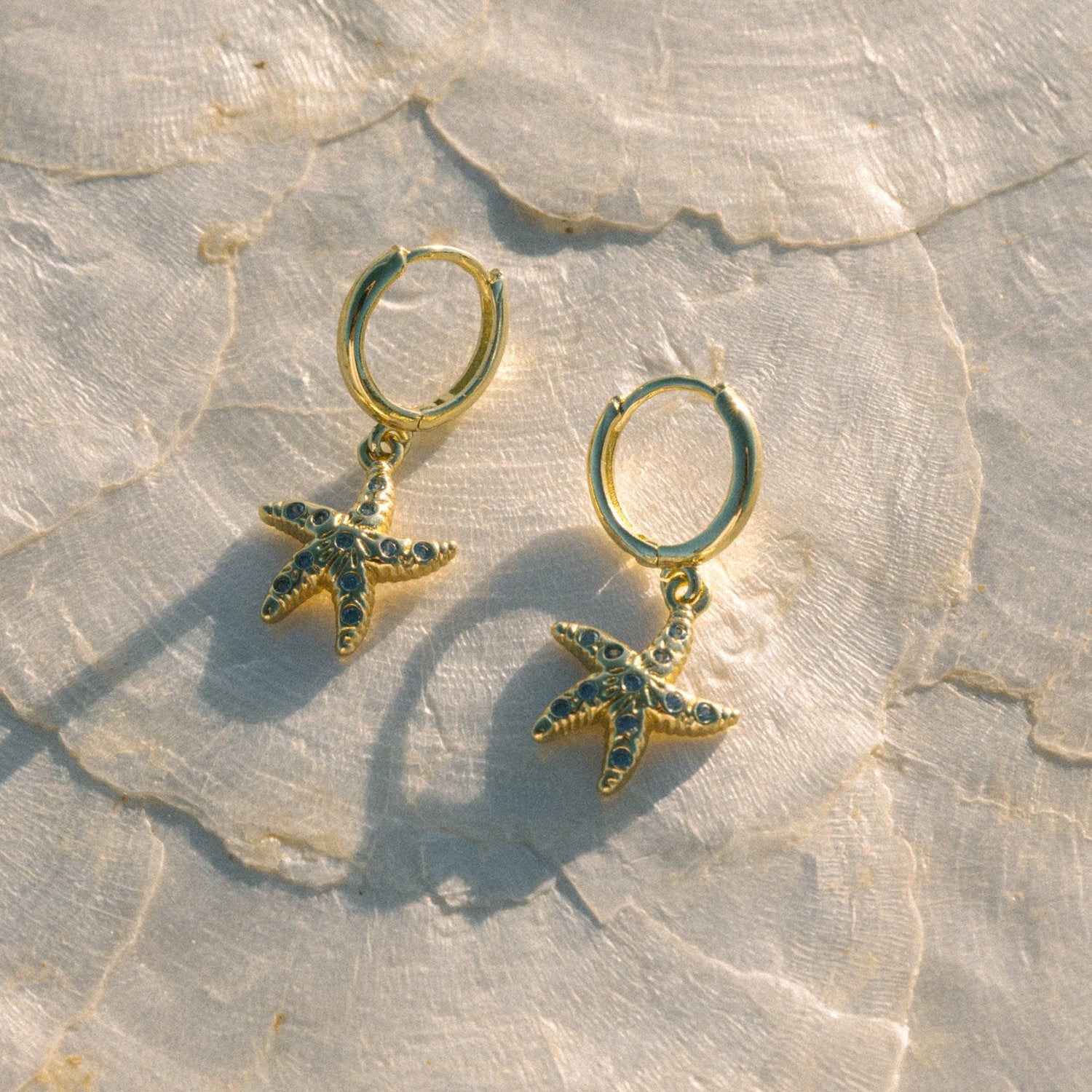The Starfish Baby Hoops are the perfect soft beach girl aesthetic! They pair beautifully with the our iridescent starfish necklaces, and really any piece on our site! These 24k gold plated hoops are perfect for swimming in the ocean sunrise to sunset! 24k gold plated / sterling silver