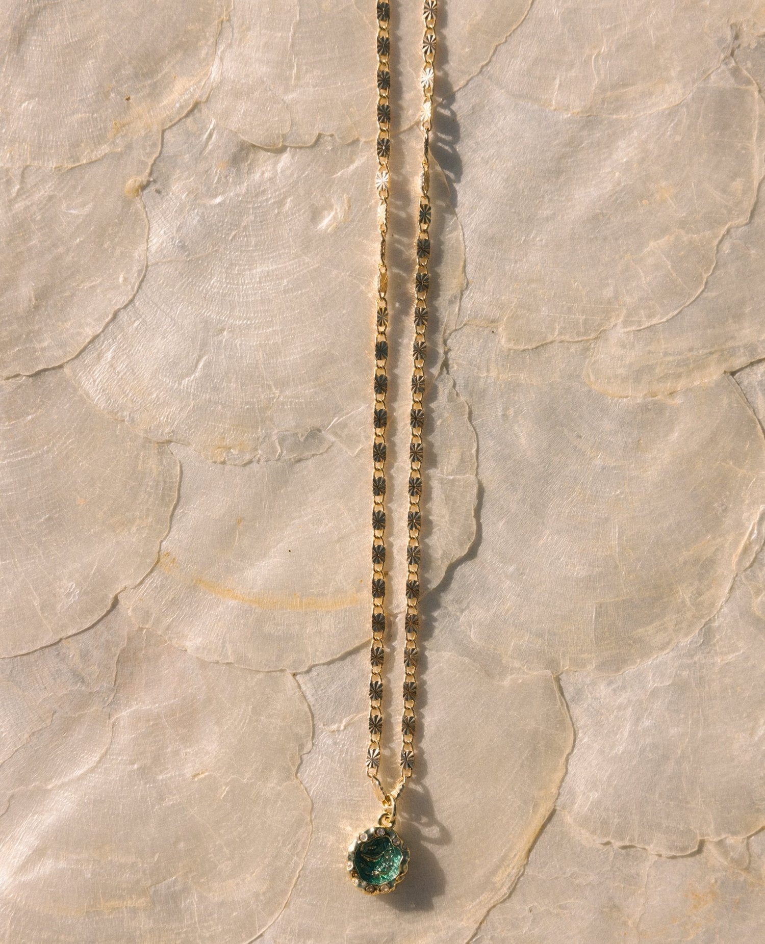 Inspired by the majestic whales of Hawaii, the Whale Tail Necklace beautifully captures the bond between a mother and baby whale. This stunning 24K gold-plated piece features an emerald green animal-filled ocean adorned with shimmering crystals that reflect the ocean’s magic. A symbol of strength, guidance, and deep connection, this necklace brings the spirit of the sea to your jewelry collection! 18-20in adjustable